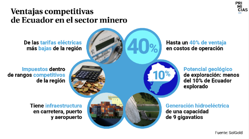 El Gobierno proyecta que la mina, en los primeros 25 años de funcionamiento, se extraiga cada año, 207.000 toneladas de cobre, 438.000 onzas de oro y 1,4 millones de onzas de plata.