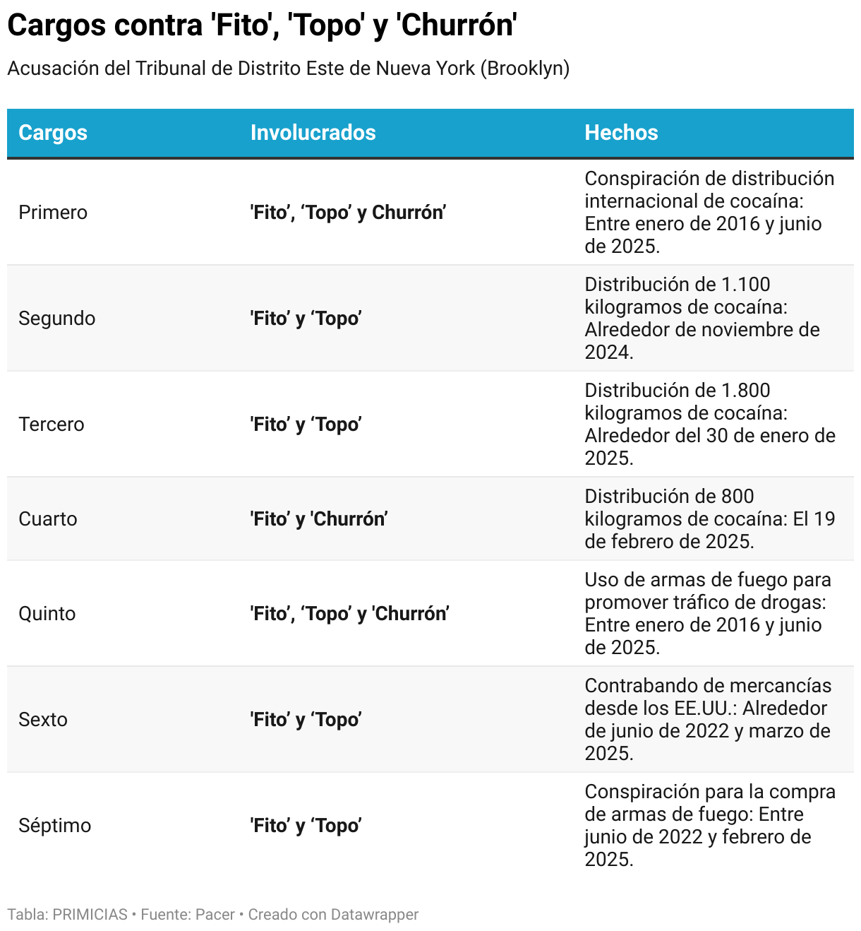 El 4 de febrero de 2025, el Tribunal del Distrito Este de Nueva York (Brooklyn) emitió una acusación formal en contra de 'Fito'. La Justicia de ese país quiere juzgarlo por siete cargos relacionados con narcotráfico y tráfico de armas.
